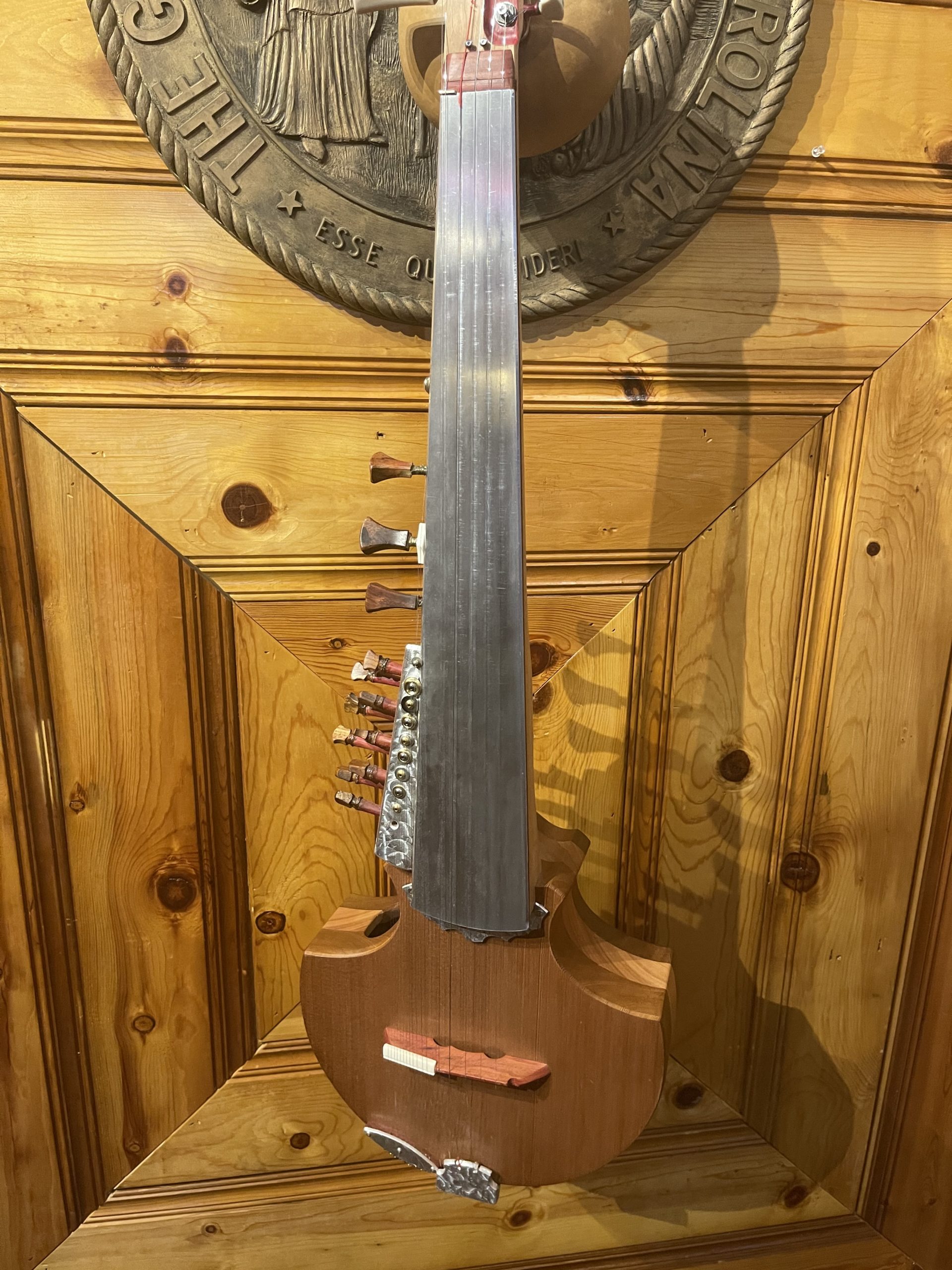 The Sursringari is the bass version of the Sarod with 29.5″ scale length and tuning centered on E, F or F#.